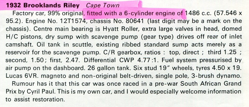 Bezeichnung/description | Brooklands 6-cylinder Special |