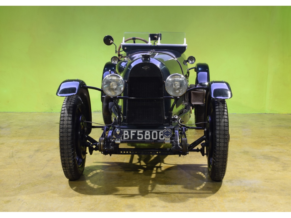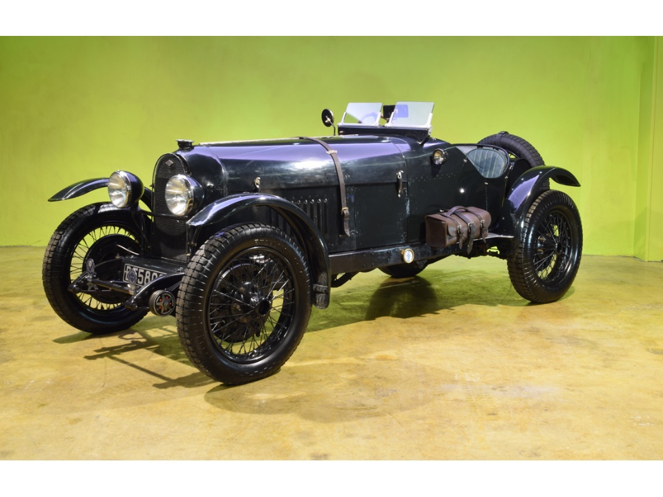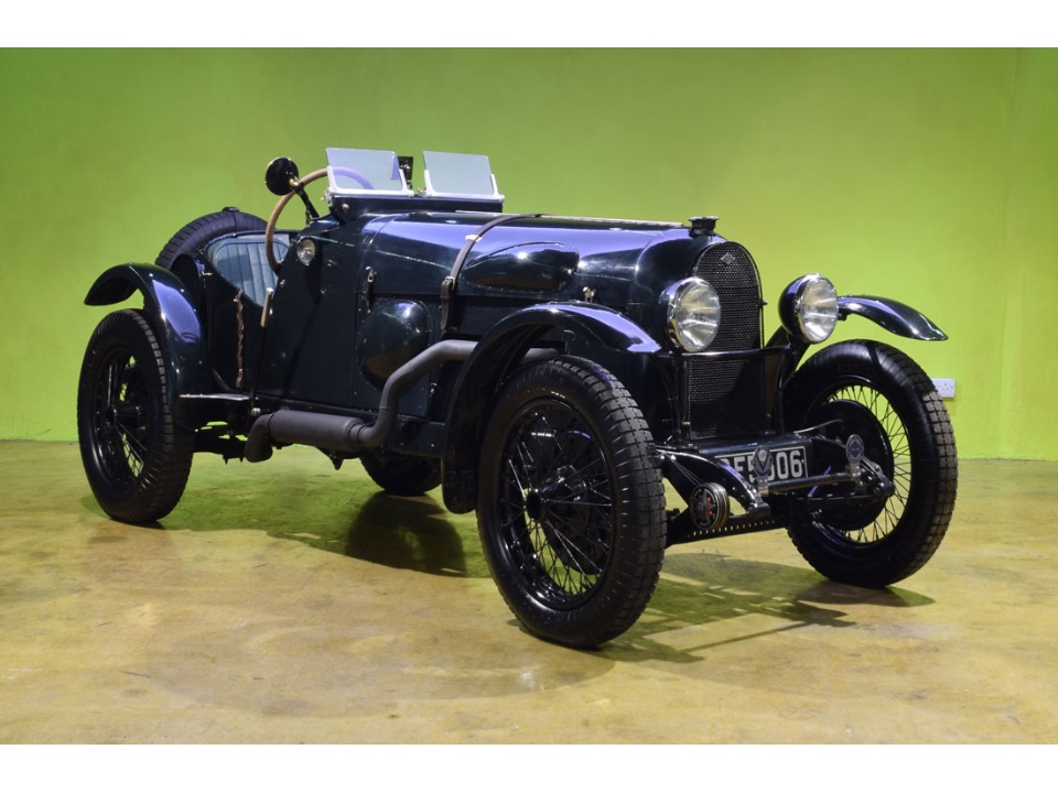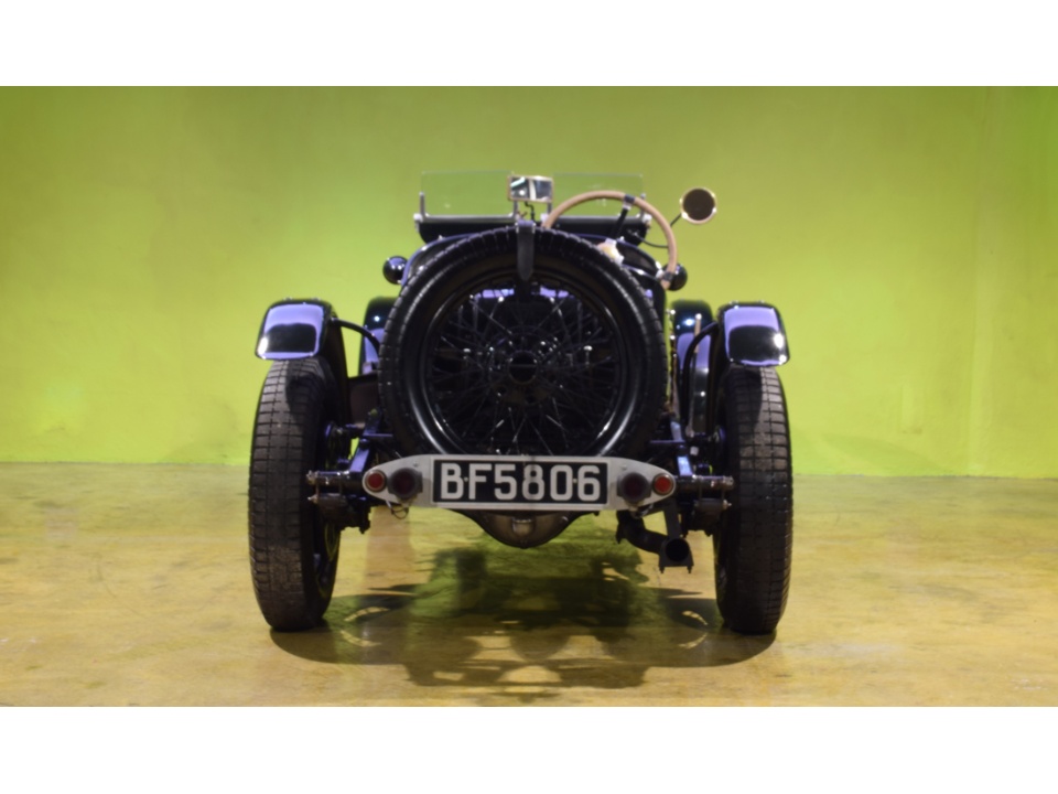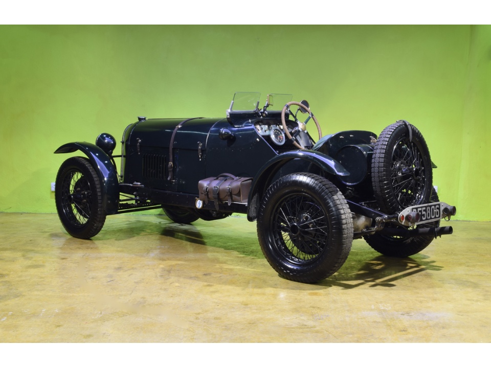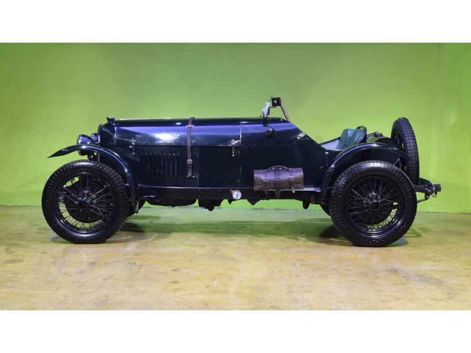 weitere Informationen/more info | The History: This is one of four cars specially developed for competition work just before and after the Second World War by the late John Garden of Inverurie, who was well known in Scottish Riley circles. It is based on a Riley and is listed by chassis number in David Styles Riley history of 1982 ‘As Old as the Industry’ as the ‘Garden Special’ when it was not then registered for road use. It is also listed in the records of the Riley Register as a ‘Garden Special’ It has been in Scotland for most of its life and has had very few owners. From John Garden it went to a Mr. Foster near Leuchars thence to a Dr. Richardson Kirkcaldy and then to Mr Peter Graham [of Forgandenny, Perth] by the time Peter acquired what remained of the Garden special, it was essentially the original chassis and axles. He meticulously re-built the car, installing the current engine, road registered it and undertaking a couple of debut competition appearances.The present owner acquired it in early 2013. Since then it has had three busy and successful seasons, achieving a number of awards and benefiting from additional mechanical and aesthetic refinements. The Car: The original 1929 Riley chassis and axles have been extensively developed to take the extra power of a tuned and balanced Ford model A engine. Rated at 3,300cc the model A engine has been upgraded to incorporate the highly desirable model B crank running on shell bearings with a full flow oil pump and filter. It is also fitted with a new 1929 type Thomas alloy cylinder head [cast using the original tooling] which raises compression and aids cooling. Twin downdraught SU’s, a sports camshaft, Mallory distributor and side exhaust all help the engine to achieve approx. 90BHP. There is potential for supercharging or fitting an OHV head or both. The rest of the engine is quite strong enough to take it and a supercharger will be provided with the car. A Ford close ratio 3 speed gearbox is mated to the original but adapted Riley torque tube rear axle. The rear axle ratio is currently 4.1, incorporating a strong 4 star diff carrier. This seems ideal for all round use in sprints, hillclimbs, trials and the open road, giving 20.5mph per 1000 rpm in top gear. 3.25 ratio previously fitted is also included with the car. Good for very fast road or racing work giving a top speed ratio of 25+ mph for every 1,000 rpm in top gear. Torque control rods and new multi disc Sprite type Hartford shock absorbers fitted to lightened front axle. 13inch brakes modified to hydro-mechanical front/rear by a tasteful and non intrusive conversion and an external mechanical handbrake operating on the hydro-mechanical brake cross shaft by rods to the rear brakes. The brake drums and back plates are machined for lightness and cooling. Gauze splashguards fitted to backplates. To Summarise: This handsome and fast vintage sports car is well proportioned having a wheelbase of 8ft. with a 4ft. track --and an all up weight of just 780kg. It is a well developed and sorted historic special with a nice patina of good use and maintenance and a big powerful vintage engine with great potential for relatively simple further tuning. Meticulously and tastefully put together with much fine period detail, including good quality vintage switchgear and instrumentation. There is ample room for even the tallest of drivers and the abundant torque from the 3.3 litre engine makes it a crisp and lively performer with agile handling on the road or track. It has new high quality leather seat squabs and mohair tonneau and the rear wheels have just been re-spoked and the oil and filter changed. Ready for immediate use and ideal for all VSCC disciplines. Currently with a VSCC Buff form eligibility document During the last three motoring seasons 2013,14, & 15 the Garden Special has competed at the following venues: VSCC Curborough Speed Trials Lakeland Trial VSCC/BARC Harewood Hillclimbs VSCC/MAC Shelsley Walsh Hillclimbs VSCC/BOC Prescott Hillclimbs VSCC Brooklands Double Twelve Speed Trials VSCC Oulton Park Autosolo VSCC Loton Park Hillclimbs Most recent awards:- Brooklands Double Twelve June 2015-- Speed Trials, 1st Vintage in class. Driving Tests, 3rd class award Prescott Hillclimb August 2015--1st Vintage in class |