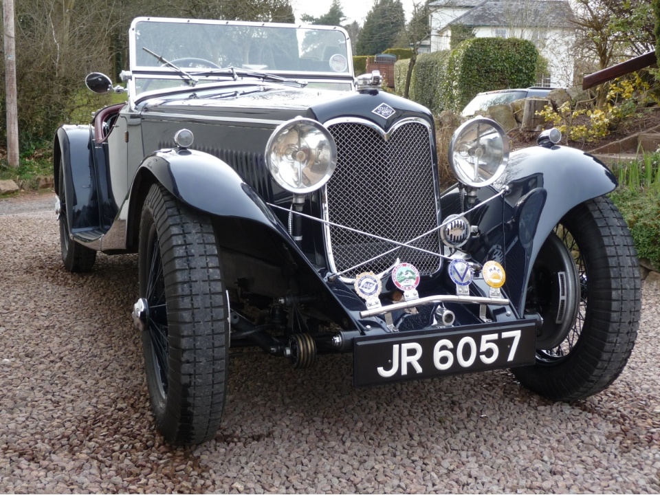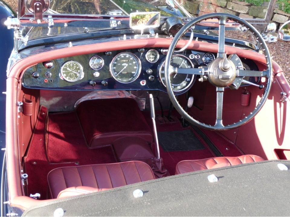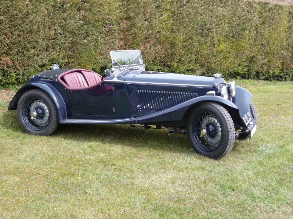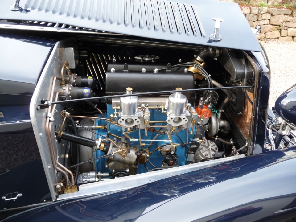 Built by Geoff Henderson in 2005-7. Falcon chassis shortened to 8'5 1/2". All aluminium coachbuilt body on ash frame.Aero screens & full weather equipment. |