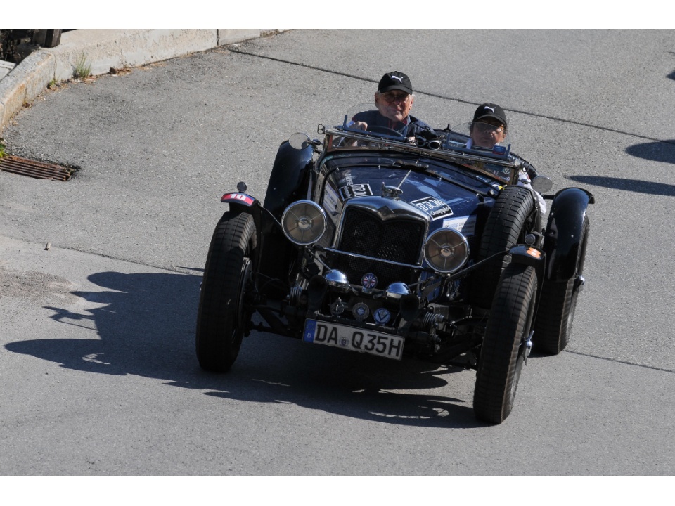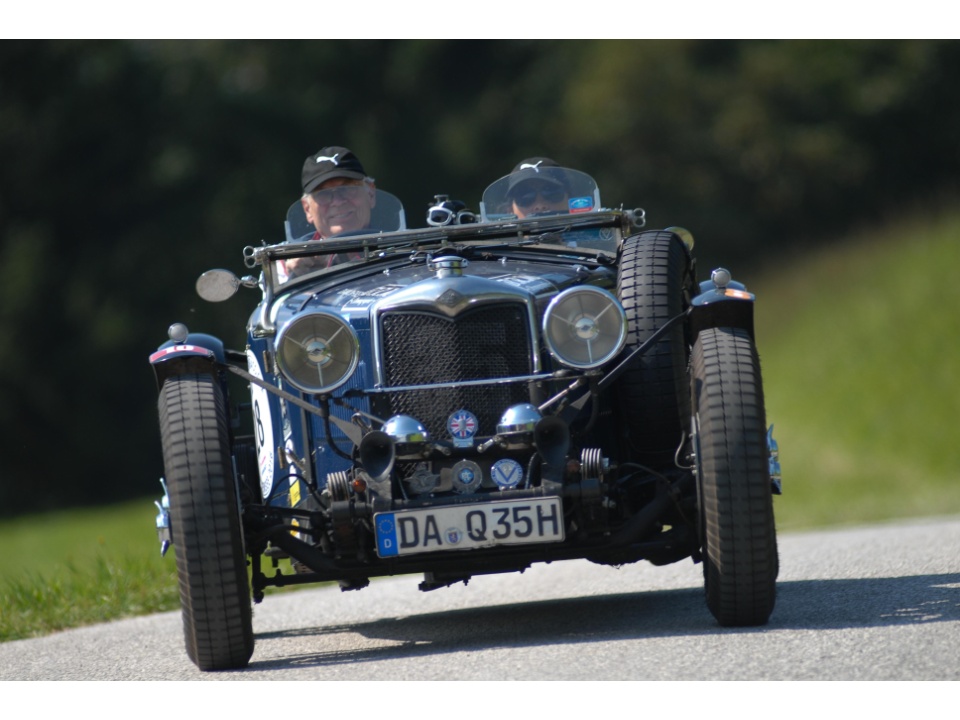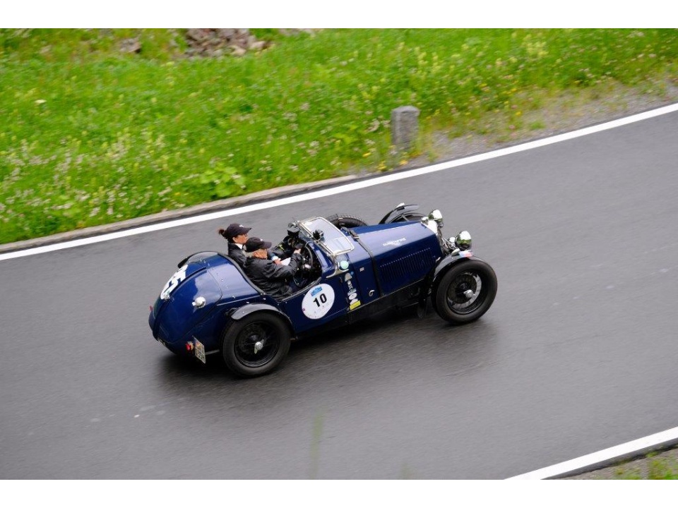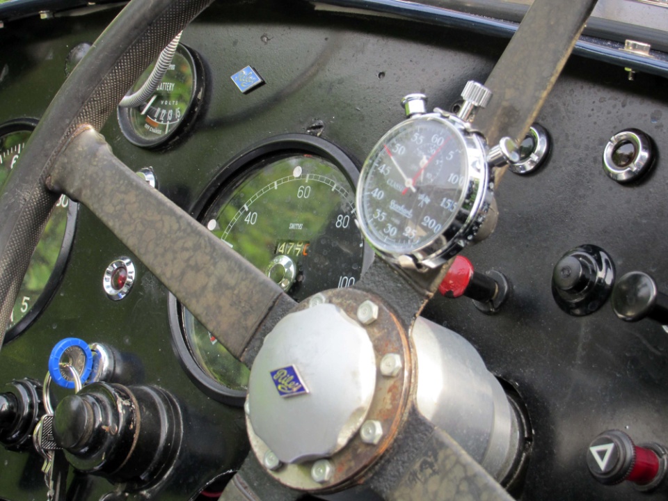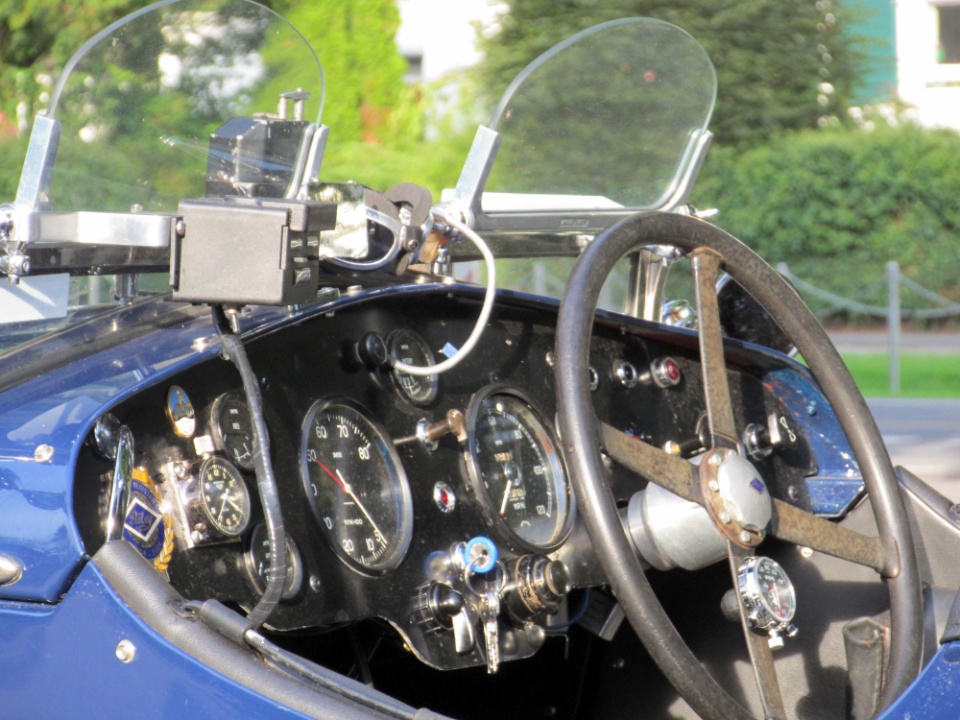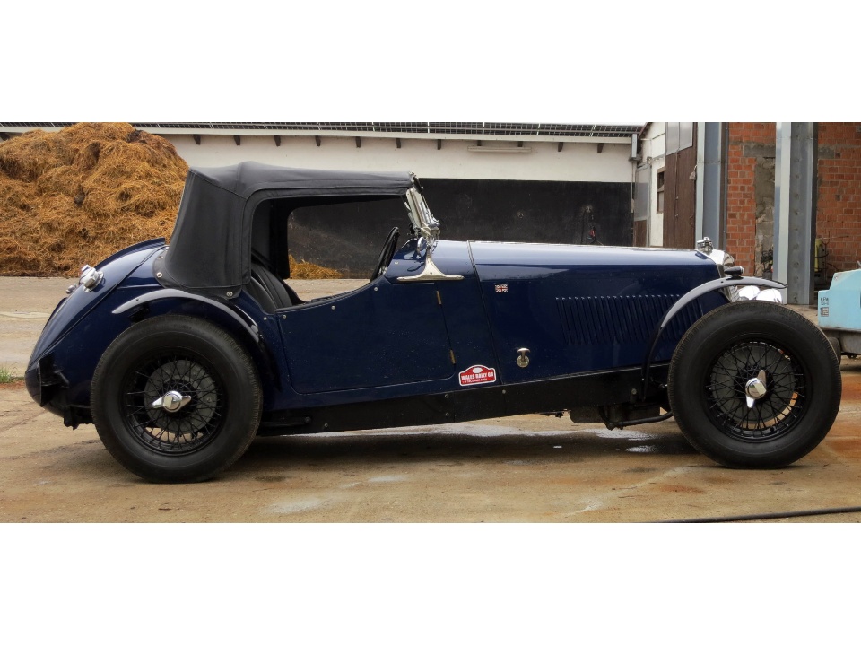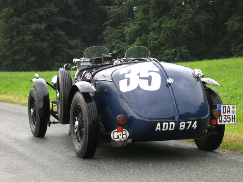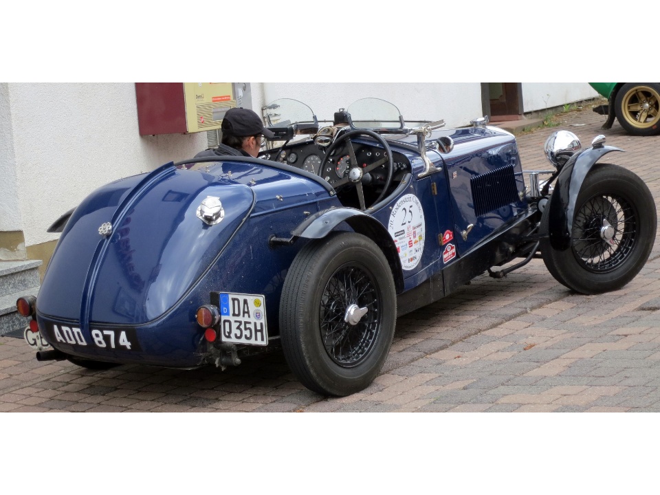 weitere Informationen/more info | Das Fahrzeuges wurde 2012 von John Lunt (The Old Garage, Lytham St Annes, Lancs.) erworben und von Steve White (Lodge Motor Engineering, Stoney Stanton, Leicestershire) wurde über den Winter der 12/4 Riley-Motor mit 1496 ccm und etwa 60 PS (Mot.-Nr. SK 3630) 2 SU-HS2-Vergaser, Höchstgegeschwindigkeit etwa 87 mph/140 km/h, überholt. Dieser Motorentyp, obwohl nur ca. 3 Jahre (1935 – 1938) gebaut, ist in der VSCC-Szene legendär und leistet in Wettbewerben oft mehr als 90 PS. Der Wagen hat ein Chassis bei dem die Hinterachse über dem Rahmen geführt ist (underslang at rear), damit das Fahrzeug tiefer liegt. Britische Blockley Tires 18 x 5.50 Zoll. Ausgestattet mit einem Wilson Preselector-Getriebe mit 4 Vorwärts- und einem Rückwärtsgang. Eine Besonderheit ist, dass das Fahrzeug ohne die übliche „Fliehkraft“-kupplung auskommt, weil diese den Anforderungen in der Rennvergangenheit nicht gewachsen gewesen wäre. Eine durchaus gebräuchliche Modifikation bei den britischen VSCC-Racecars. |
