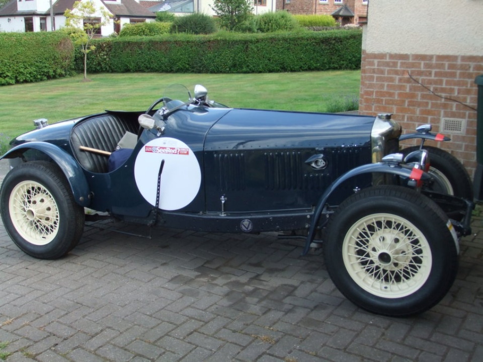 Informationen/information | Built by Richard Scaldwell originally. Modified by Steve White. Engine put together by Keith Pointing. Rebodied by J Selway in 2002. Hi lift cams , four branch manifold, close ratio silent third gearbox with brooklands remote , steel rods, twin 1 3/4" SU carbs, shortened chassis. Six stud wheels, set of 16, 18 and 19". Lightened front axle with register hubs. Cable brakes. Very competitive competition car successfully campaigned in VSCC events . Buff form. Present owner giving up racing. Road registered. |
